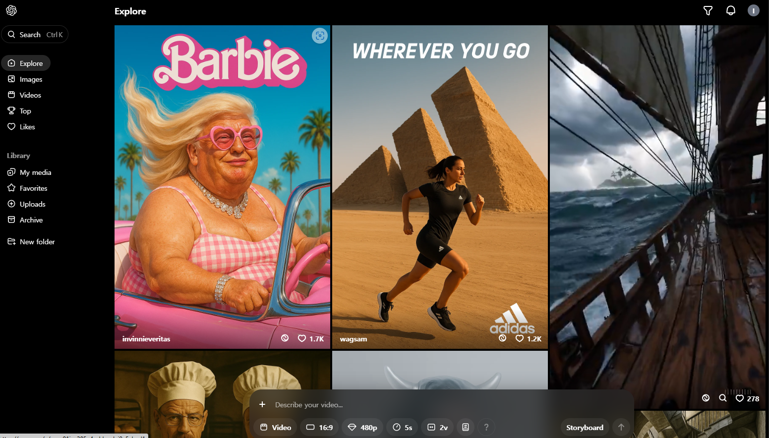 ▶️ 현재 Sora는 ChatGPT Plus(월 $20) 또는 Pro(월 $200) 유료 구독자만 사용할 수 있으며,